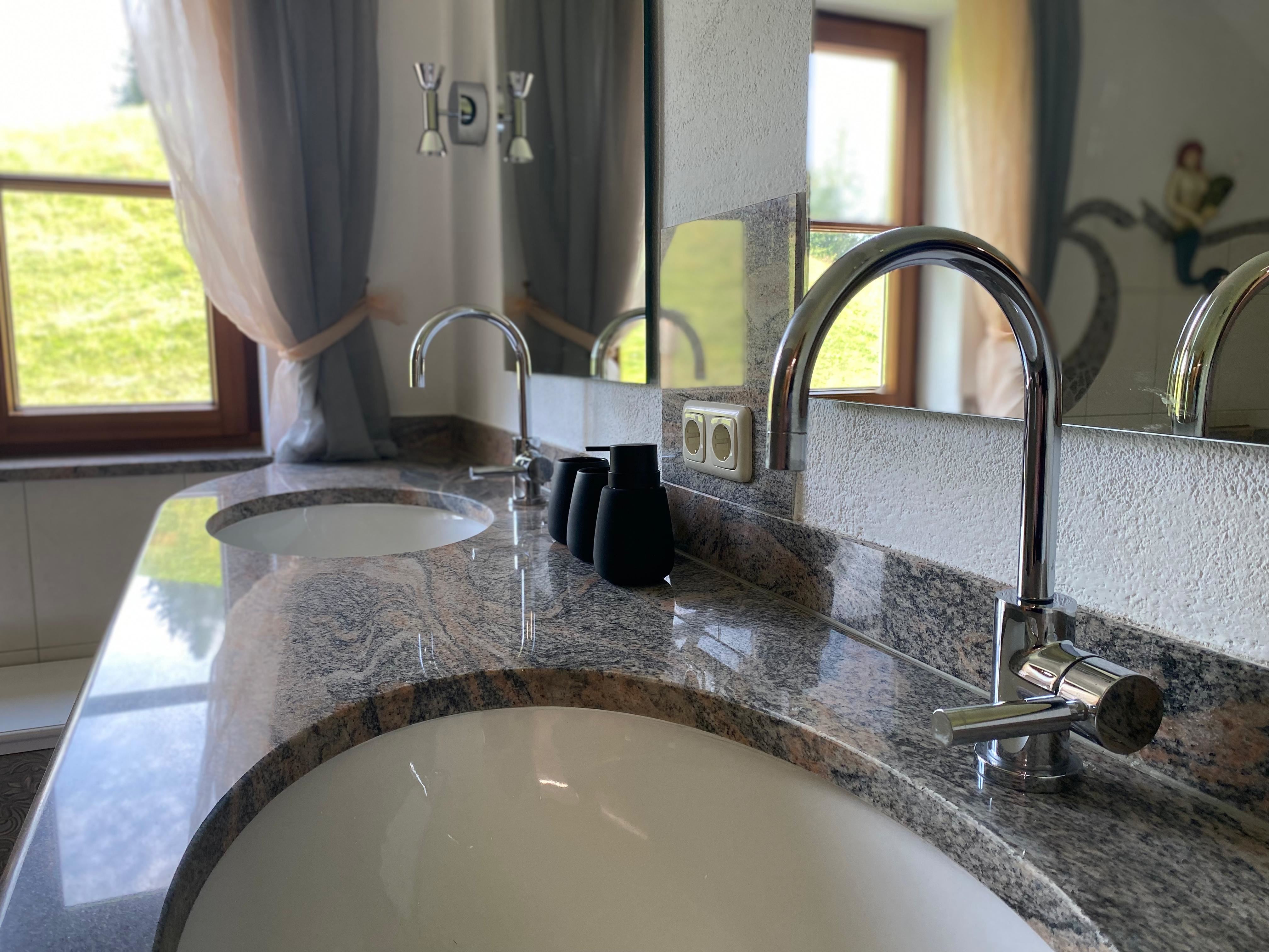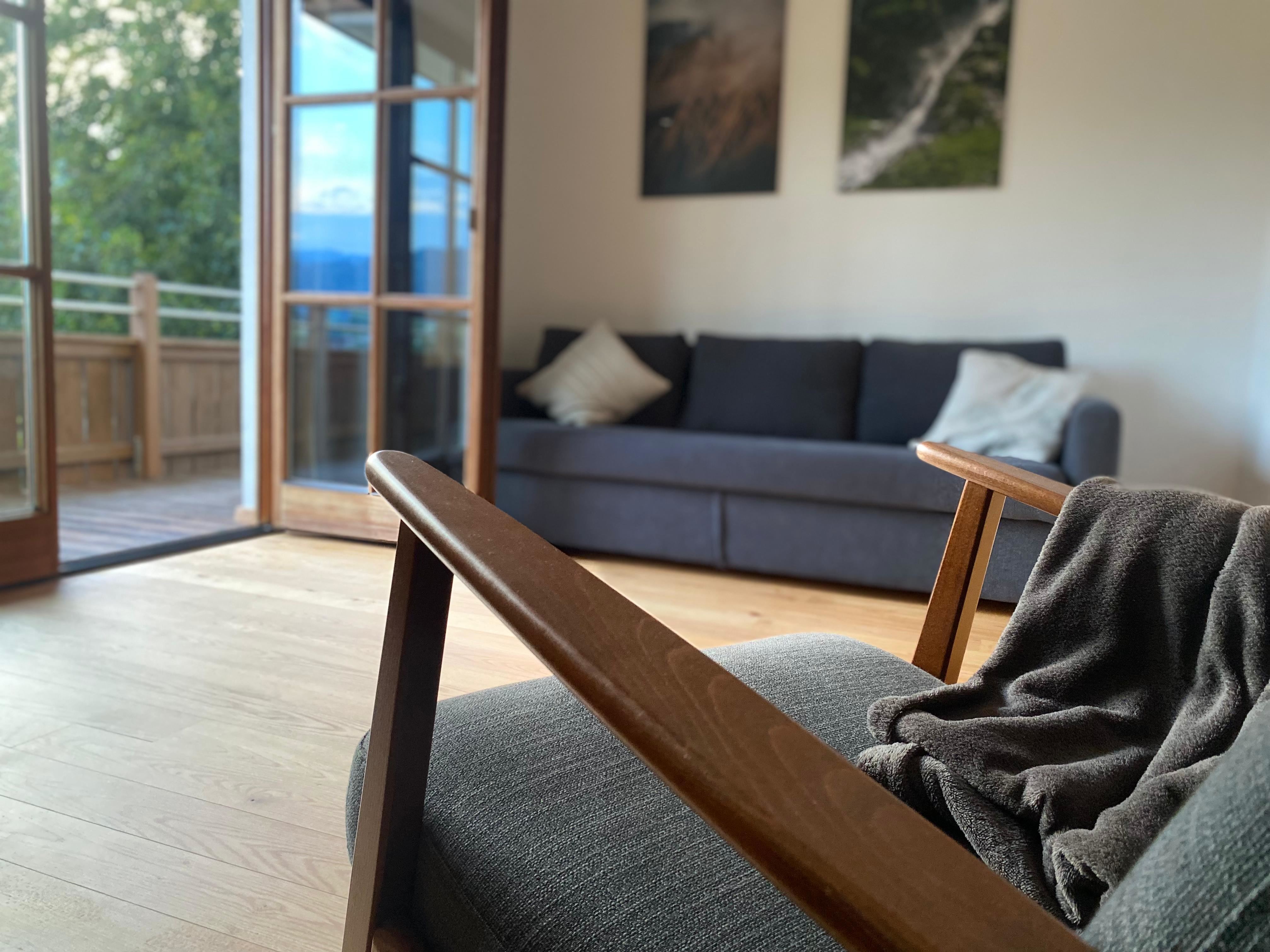 Das Appartement A"lpenwald" ist ein großzügiges Appartement von 72 m2 im 1 Obergeschiss im Privathaus der Familie ein. Vom zugehörigen Balkon aus genießen Gäste einen herrlichen freien Blick auf die Kitzbüheler Alpen, auf Wiesen, das Dorf Bad Häring und das Kurzentrum. Ein hoher Raum mit Sichtdachstuhl vermittelt Freiraum. In diesem offenen Raum befinden sich das Schlafzimmer, der Wohnraum, ein Essraum und die voll möblierte moderne Küche. Als abgeschlossener Raum ist das Badezimmer ausgeführt - mit Dusche, Badewanne, WC und Waschtisch. Drei Dachfenster, eine Balkon-Doppeltüre, ein Nordfenster und große Gaupenfenster holen viel Licht in das Alpinloft. Der Vollholz-Eichenboden und die vielen Fichtenbalken des Daches schaffen Behaglichkeit. Sie schlafen im Hotel-Boxspringbett (Doppelbett) für zwei Personen (180x200 cm) oder am Schlafsofa (140x200 cm); somit finden maximal vier Personen Platz. Gönnen Sie sich dieses Urlaubs-Königreich!