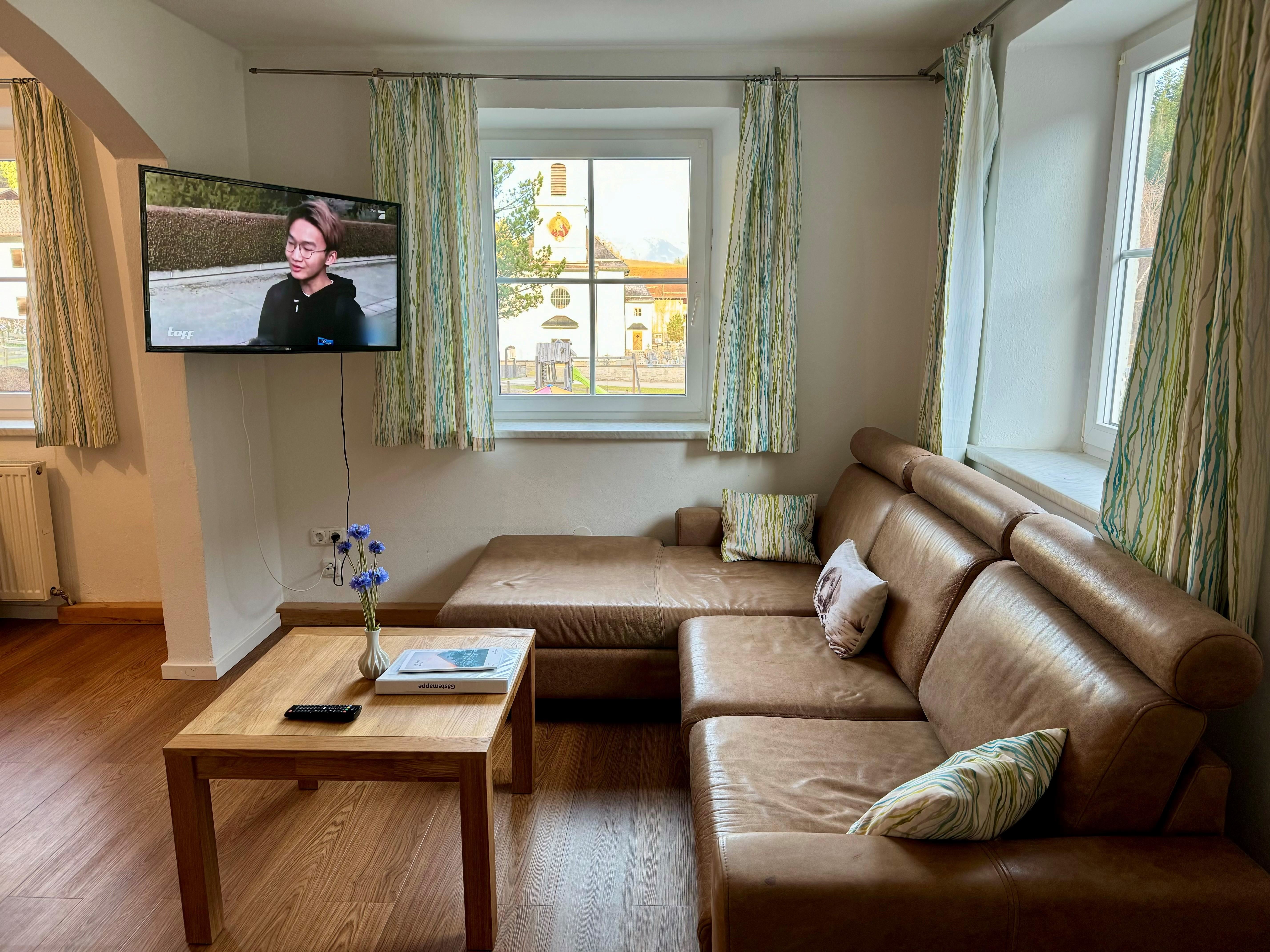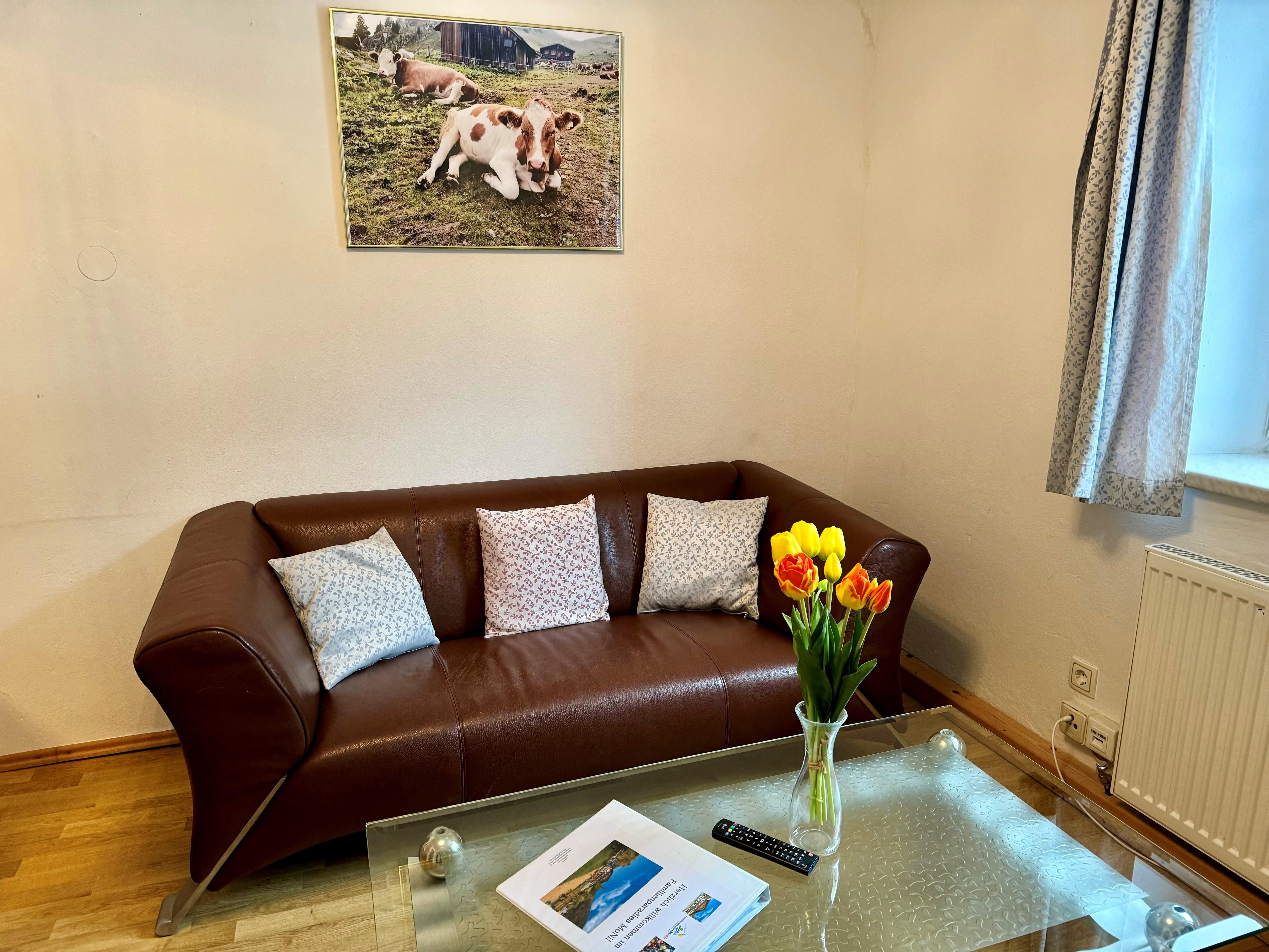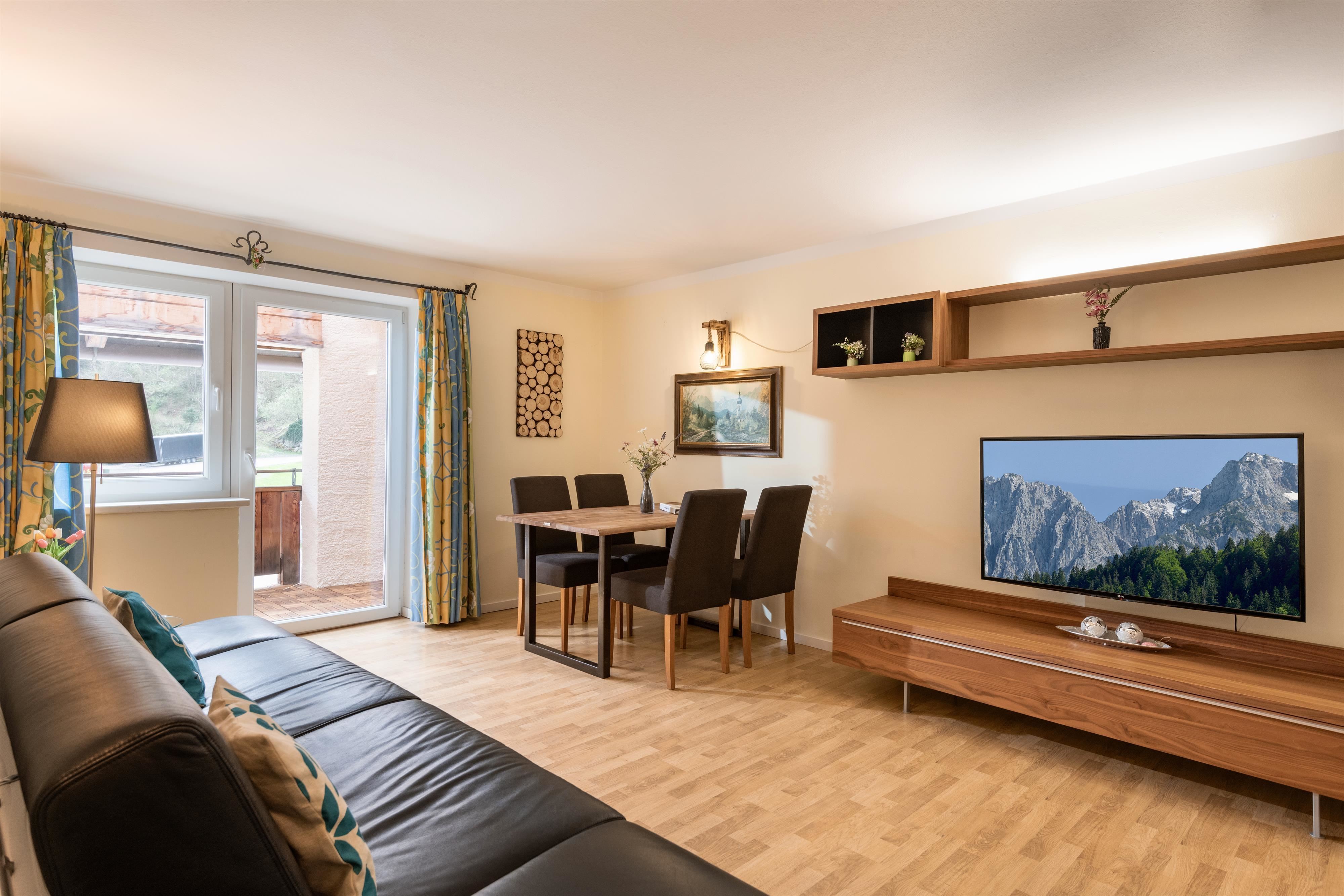 Das gemütliche Schlafzimmer verfügt über ein komfortables Doppelbett und bietet großzügige Staumöglichkeiten für euer Reisegepäck. Im lichtdurchfluteten Wohnzimmer mit ausziehbarem Ledersofa, Medienbereich mit Flachbildfernseher und gemütlicher Essecke könnt ihr nicht nur bei schlechtem Wetter verweilen. Gratis WLAN steht euch hier und im gesamten Haus zur Verfügung. Die moderne und voll ausgestattete Küche verfügt u.a. über eine Spülmaschine, einen Backofen, einen E- Herd, einen Kühlschrank mit Gefrierfach, einen Wasserkocher, eine Nespressomaschine, einen Toaster und Geschirr. Ihr findet ein modernes und adäquat ausgestattetes Badezimmer mit Dusche, WC und Haartrockner vor. Vom Schlafzimmer und vom Wohnbereich aus erreicht ihr euren eigenen, überdachten Balkon, mit einmaligem Panoramablick auf die Tiroler Alpen.