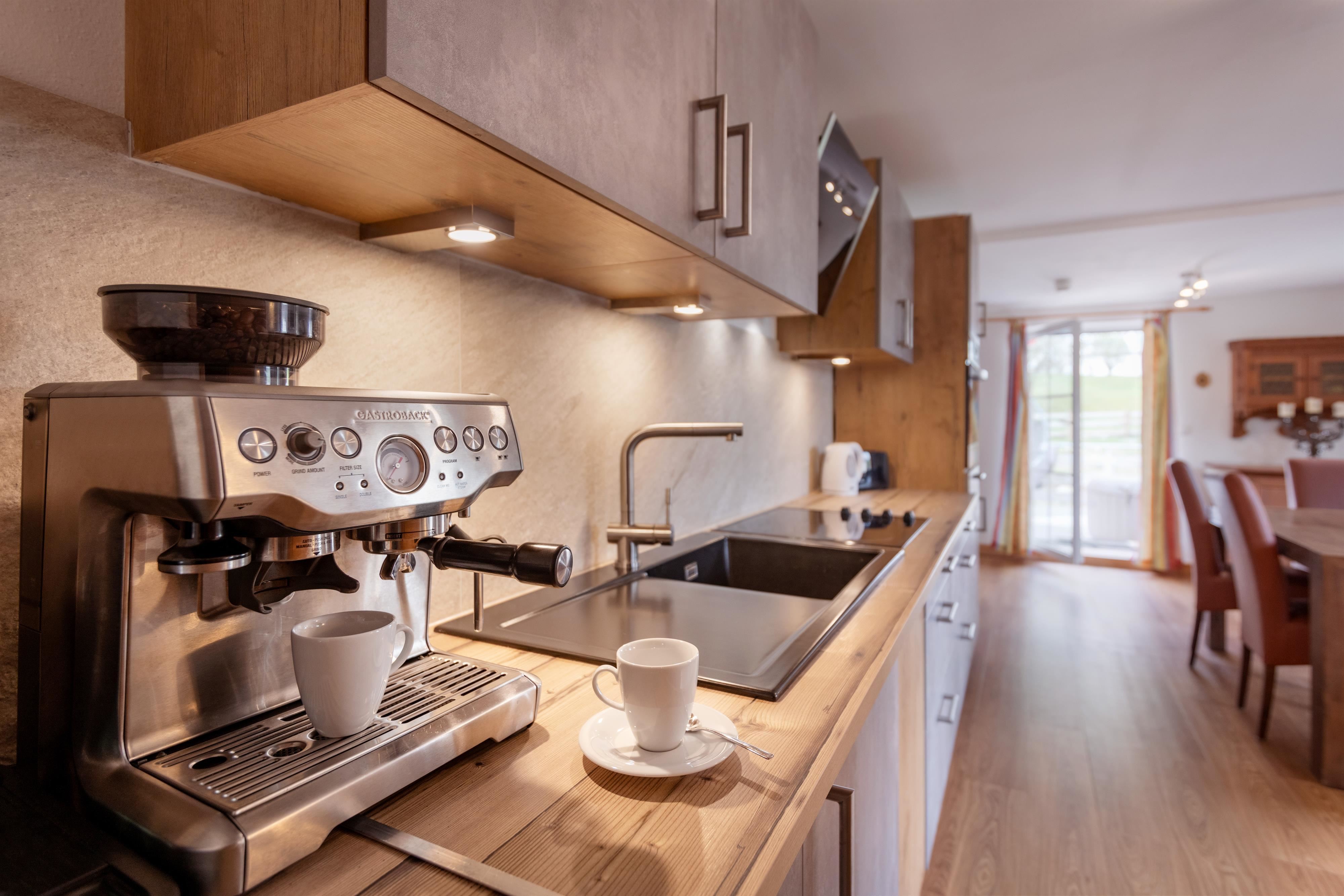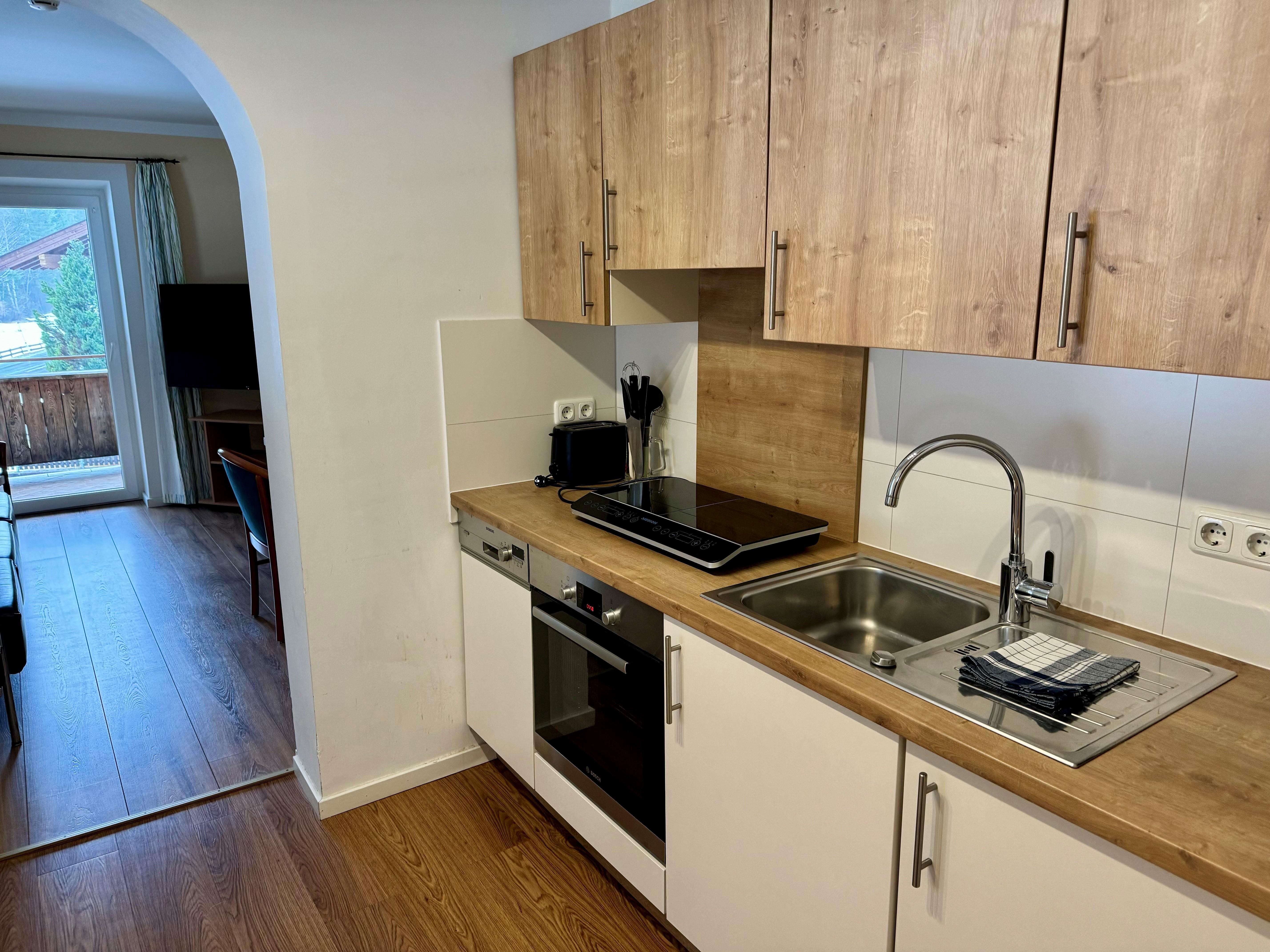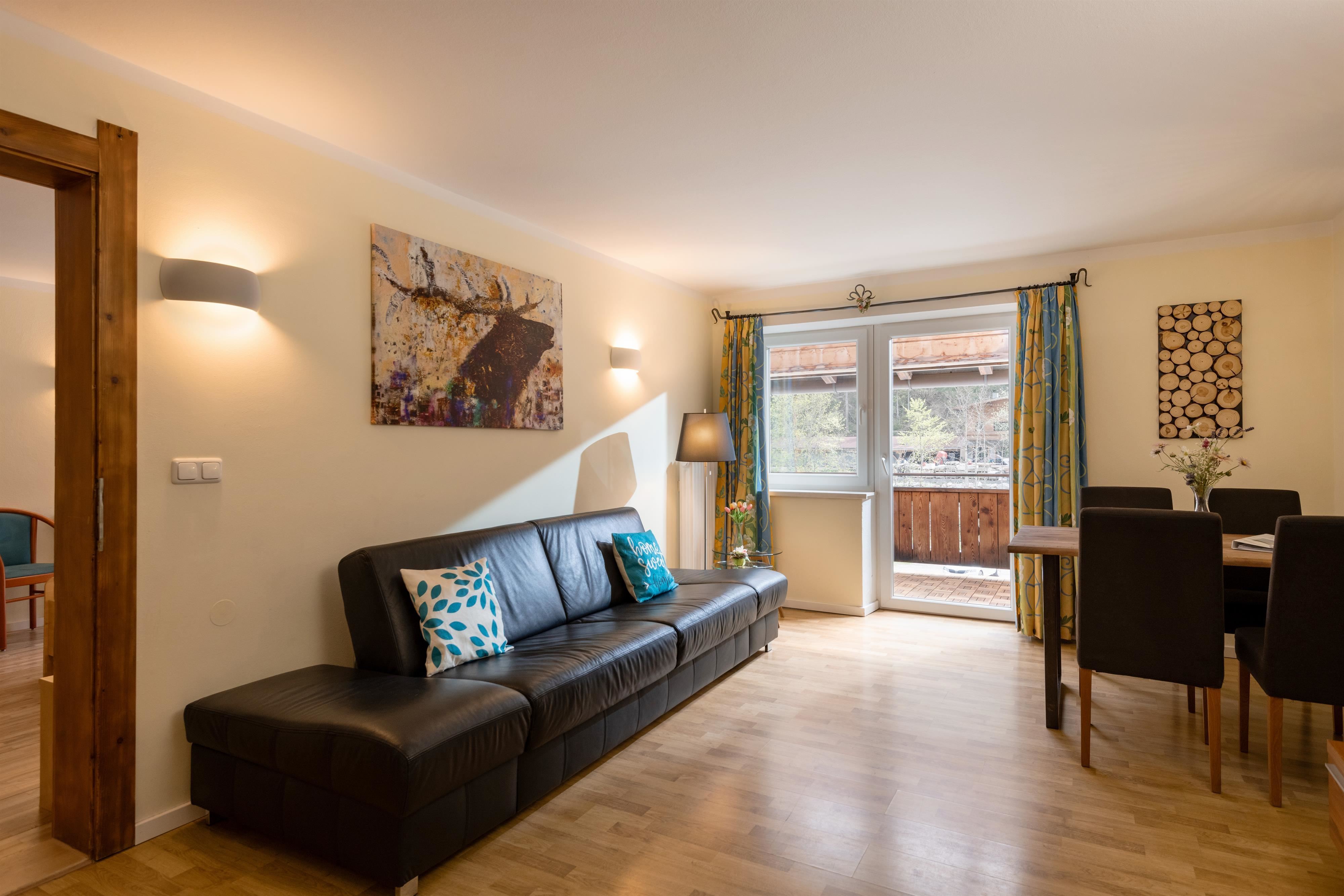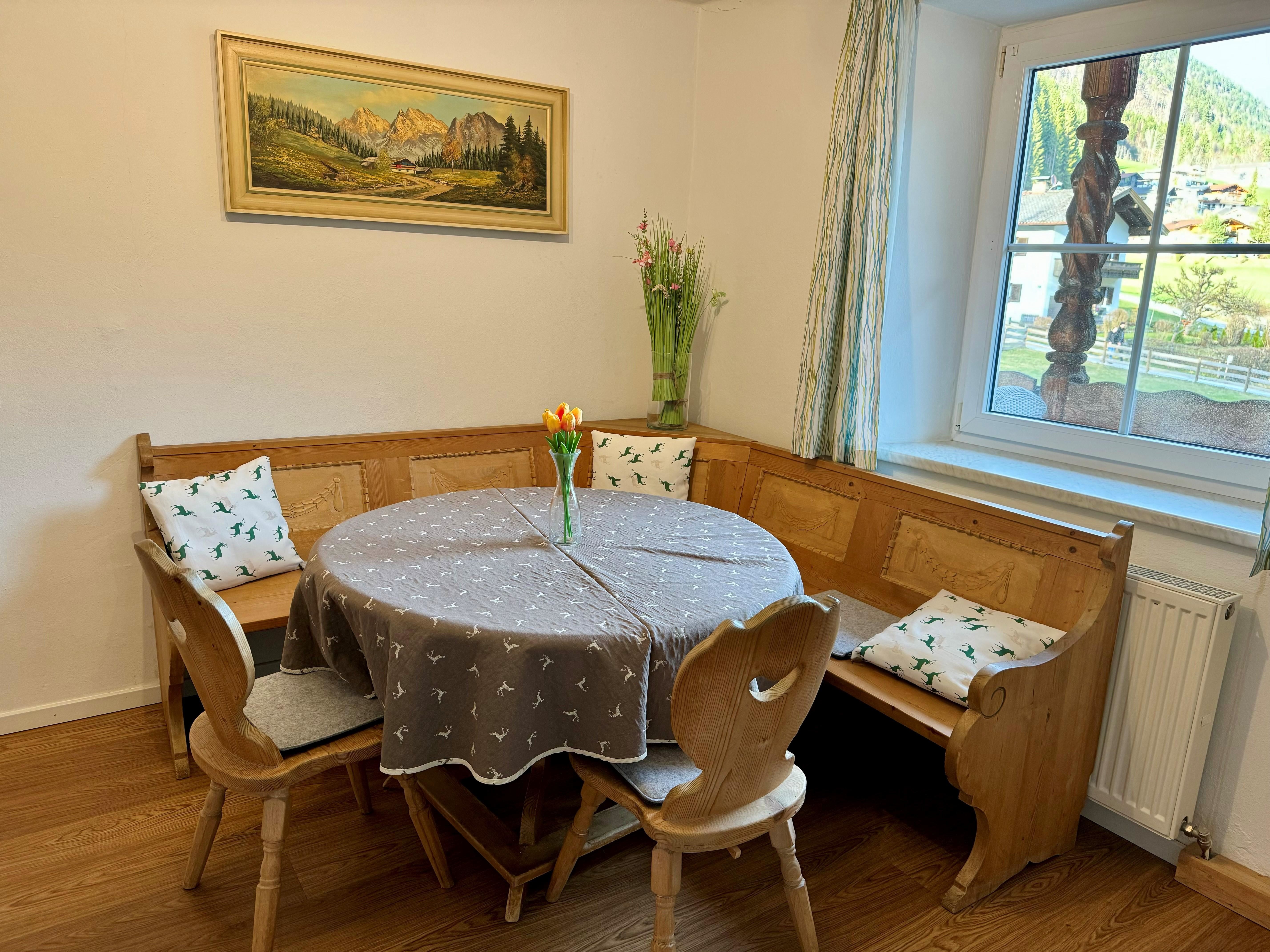 Das gemütliche Schlafzimmer verfügt über ein komfortables Doppelbett und bietet großzügige Staumöglichkeiten für euer Reisegepäck. Im lichtdurchfluteten Wohnzimmer mit ausziehbarem Ledersofa, Medienbereich mit Flachbildfernseher und gemütlicher Essecke könnt ihr nicht nur bei schlechtem Wetter verweilen. Gratis WLAN steht euch hier und im gesamten Haus zur Verfügung. Die moderne und voll ausgestattete Küche verfügt u.a. über eine Spülmaschine, einen Backofen, einen E- Herd, einen Kühlschrank mit Gefrierfach, einen Wasserkocher, eine Nespressomaschine, einen Toaster und Geschirr. Ihr findet ein modernes und adäquat ausgestattetes Badezimmer mit Dusche, WC und Haartrockner vor. Vom Schlafzimmer und vom Wohnbereich aus erreicht ihr euren eigenen, überdachten Balkon, mit einmaligem Panoramablick auf die Tiroler Alpen.