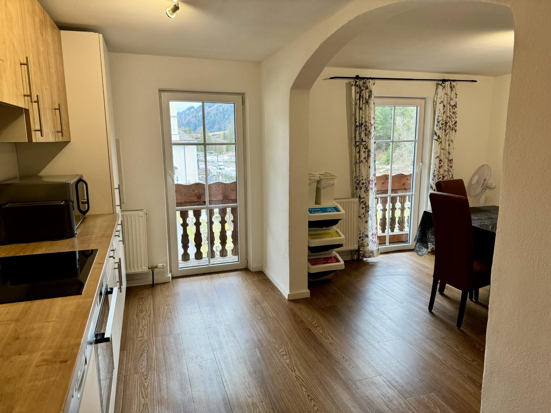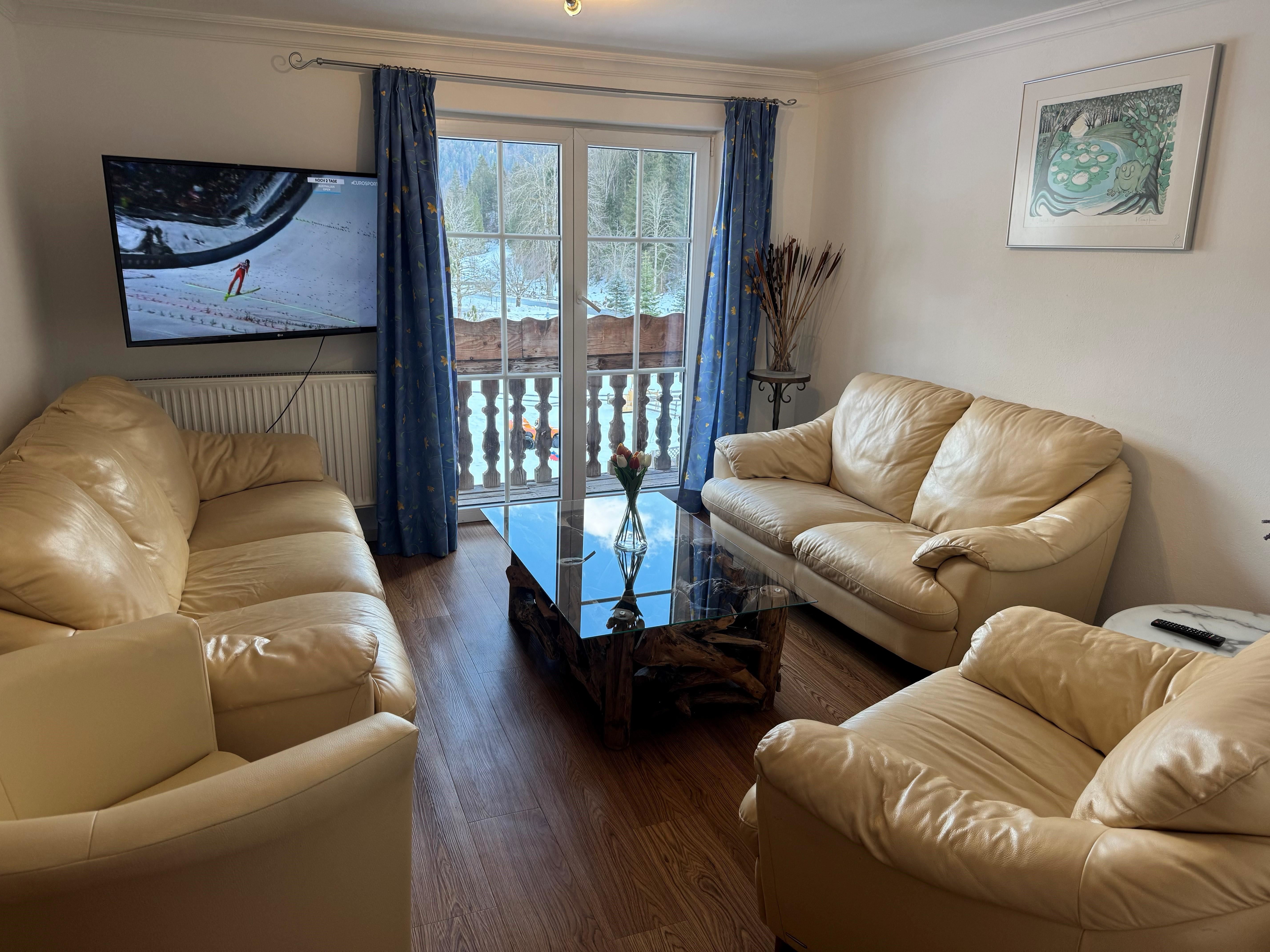 Die beiden gemütlichen Schlafzimmer verfügen jeweils über ein komfortables Doppelbett. Im lichtdurchfluteten Wohnzimmer mit Ledersofa, Medienbereich mit Flachbildfernseher, gemütlicher Essecke und offener Wohnküche können Sie nicht nur bei schlechtem Wetter verweilen. Gratis WLAN steht euch hier und im gesamten Haus zur Verfügung. Die moderne und voll ausgestattete Wohnküche verfügt u.a. über eine Spülmaschine, einen Backofen, einen E-Herd, einen Kühlschrank mit Gefrierfach, einen Wasserkocher, eine Nespressomaschine, einen Toaster und Geschirr. Sie finden ein modernes und adäquat ausgestattetes Badezimmer mit Dusche, Badewanne, WC und Haartrockner vor. Außerdem bietet euch die Wohnung noch eine weitere separate Dusche und ein weiteres separates WC. Von beiden Schlafzimmern und vom Wohnbereich aus erreichen Sie Ihren eigenen, überdachten Balkon, mit einmaligem Panoramablick auf die Tiroler Alpen.