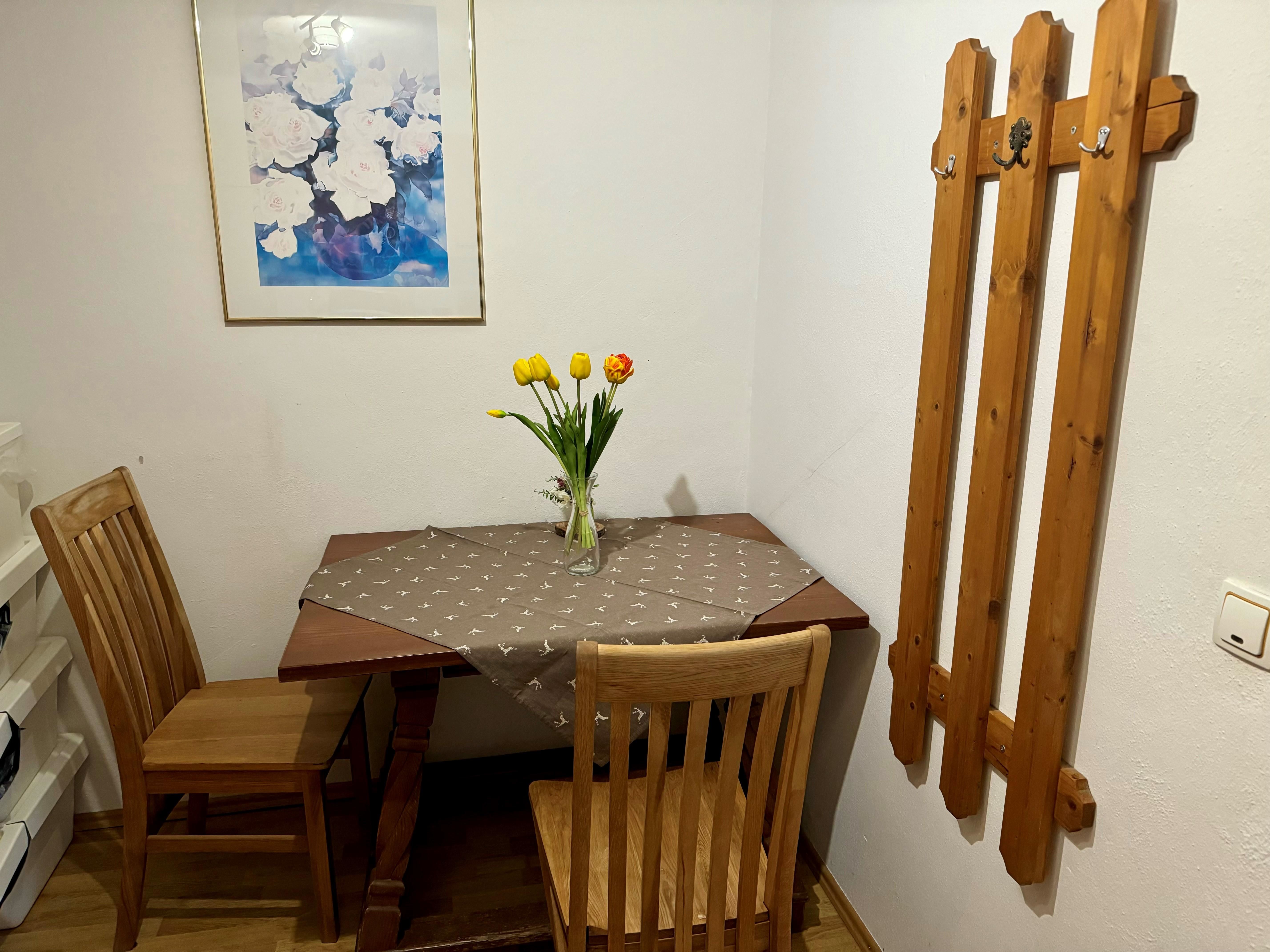 AusstattungAnzahl Doppelbett/en: 2, Backofen, Badewanne, Balkon, Bettwäsche vorhanden, Decken, Dusche, Elektroherd, Etage / Stockwerk: 1, Gefriermöglichkeit, Grundausstattung (Handtücher, Bettwäsche, Seife, Toilettenpapier), Haarföhn, Handtücher vorhanden, Heizung, Holz- oder Parkettboden, Kaffee-Maschine, Küchenzeile, Nichtraucher Zimmer/App./Whg., Schrank, Wasserkocher, Wohnküche