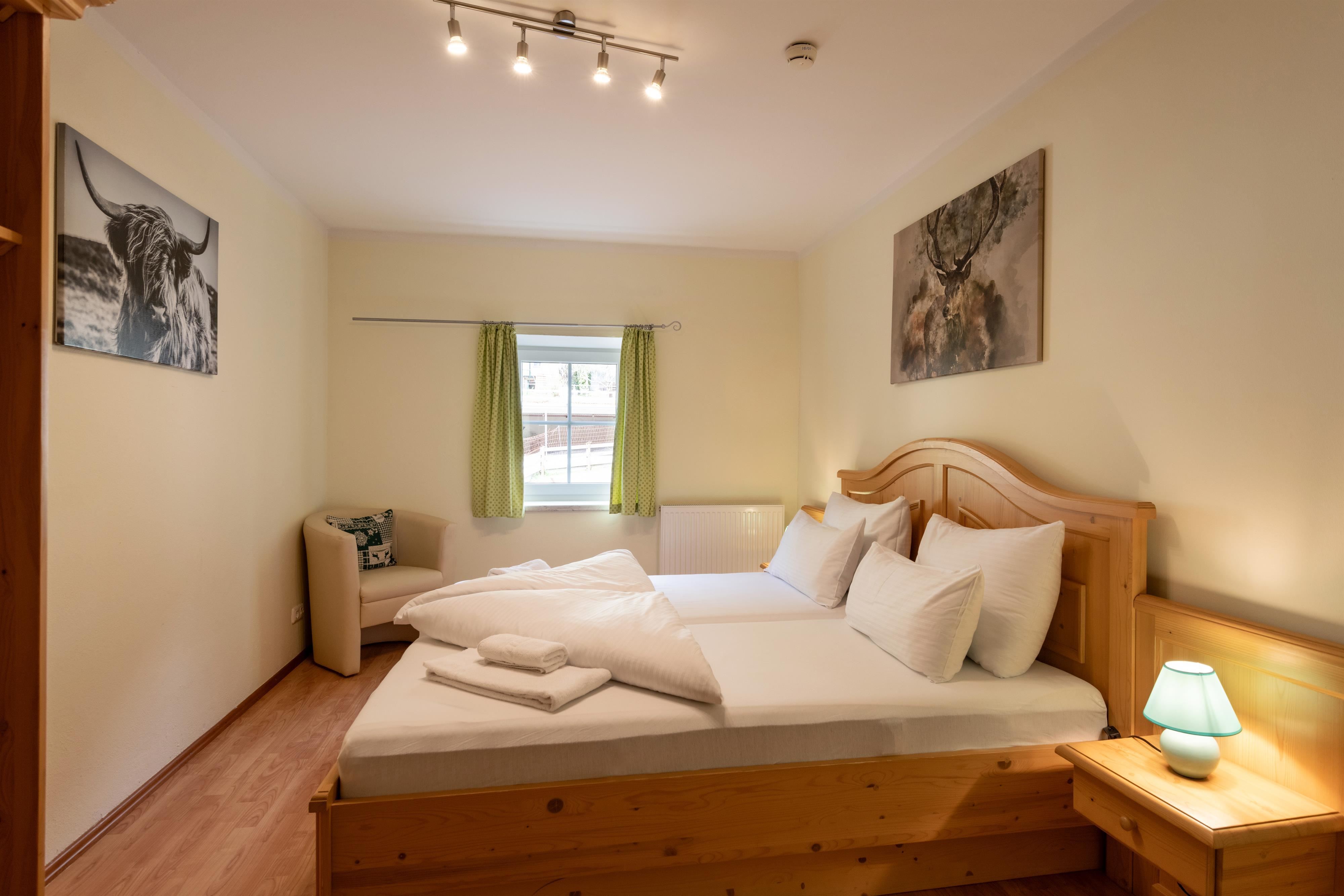 Die beiden gemütlichen Schlafzimmer verfügen jeweils über ein komfortables Doppelbett und bieten großzügige Staumöglichkeiten für euer Reisegepäck. Für eine fünfte Person stellen wir euch gerne ein bequemes Zustellbett mit freier Platzwahl zur Verfügung (Gegen Aufpreis). Im lichtdurchfluteten Wohnzimmer mit Ledersofa, Medienbereich mit Flachbildfernseher, gemütlicher Essecke und offener Wohnküche könnt ihr nicht nur bei schlechtem Wetter verweilen. Gratis WLAN steht euch hier und im gesamten Haus zur Verfügung. Die moderne und ausgestattete Wohnküche verfügt u.a. über einen E-Herd, einen Kühlschrank mit Gefrierfach, einen Wasserkocher, einen Toaster, eine Nespressomaschine und Geschirr. Ihr findet ein modernes und adäquat ausgestattetes Badezimmer mit Dusche, WC und Haartrockner vor. Von einem Schlafzimmer aus erreicht ihr euren eigenen, überdachten Balkon, mit einmaligem Panoramablick auf die Tiroler Alpen.