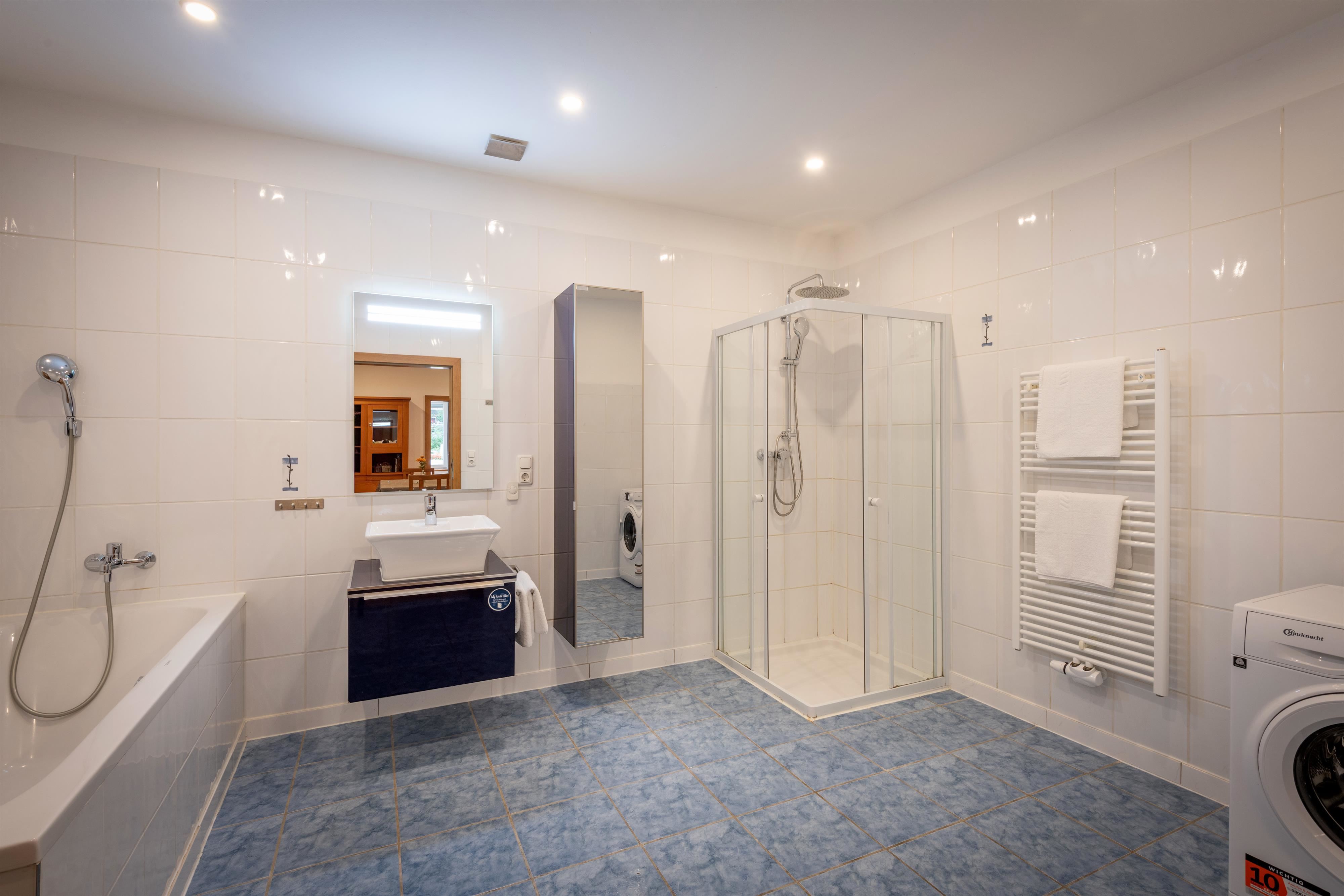 Die beiden gemütlichen Schlafzimmer verfügen jeweils über ein komfortables Doppelbett mit Zugang zum Balkon. Im lichtdurchfluteten Wohnzimmer mit Ledersofa, Medienbereich mit Flachbildfernseher, gemütlicher Essecke und offener Wohnküche könnt ihr nicht nur bei schlechtem Wetter verweilen. Gratis WLAN steht euch hier und im gesamten Haus zur Verfügung. Die moderne und voll ausgestattete Wohnküche verfügt u.a. über eine Spülmaschine, einen Backofen, einen E-Herd, einen Kühlschrank mit Gefrierfach, einen Wasserkocher, eine Nespressomaschine, einen Toaster und Geschirr. Sie finden ein modernes und adäquat ausgestattetes Badezimmer mit Dusche, Badewanne, WC und Haartrockner vor. Außerdem bietet Ihnen die Wohnung noch eine weitere separate Dusche und ein weiteres separates WC.