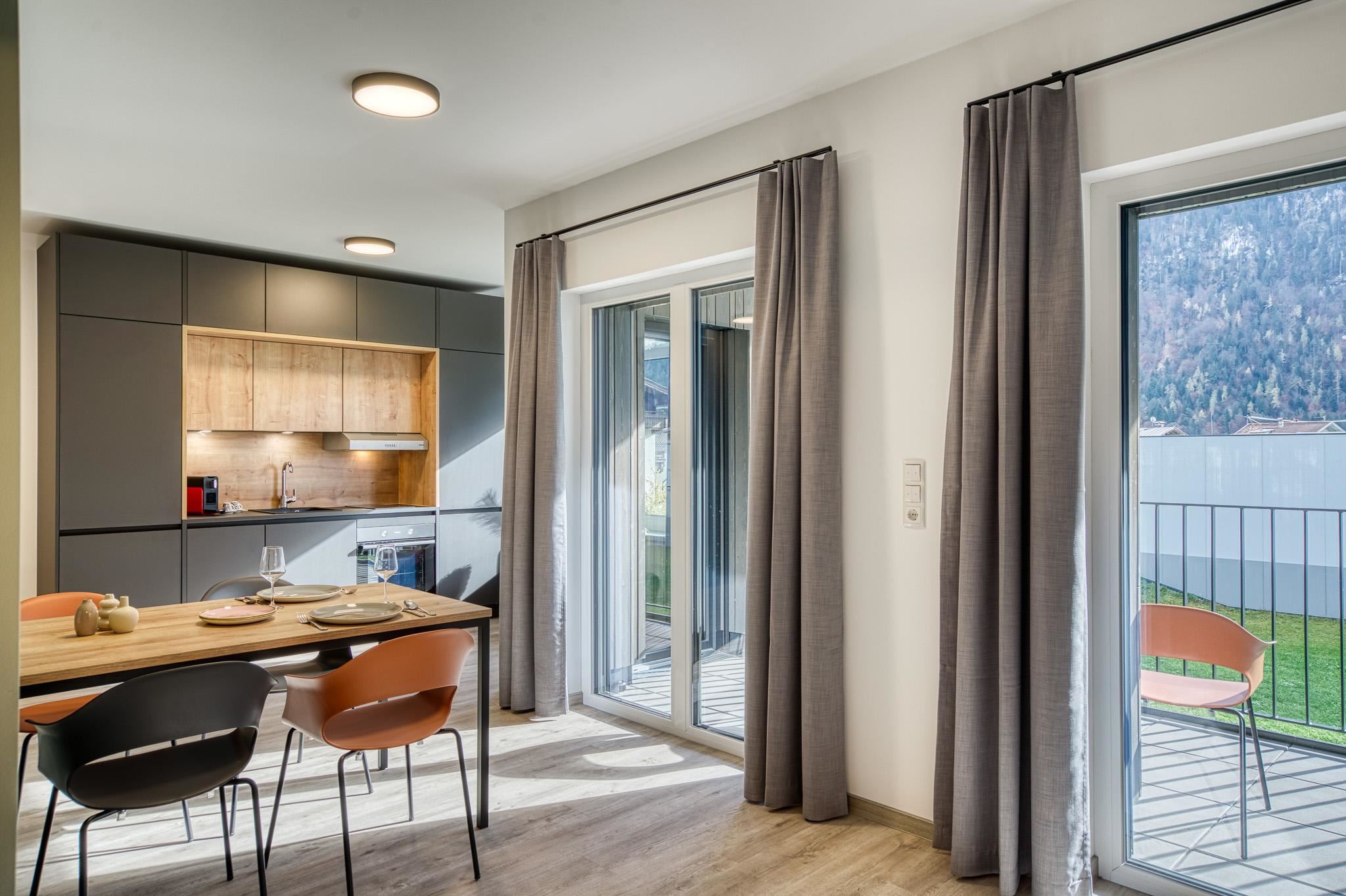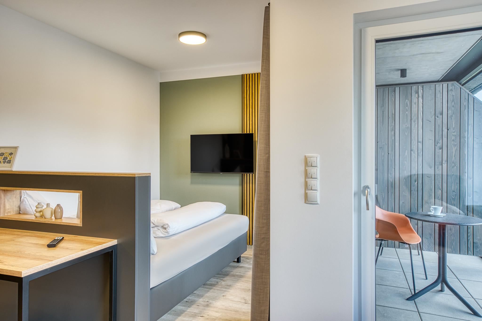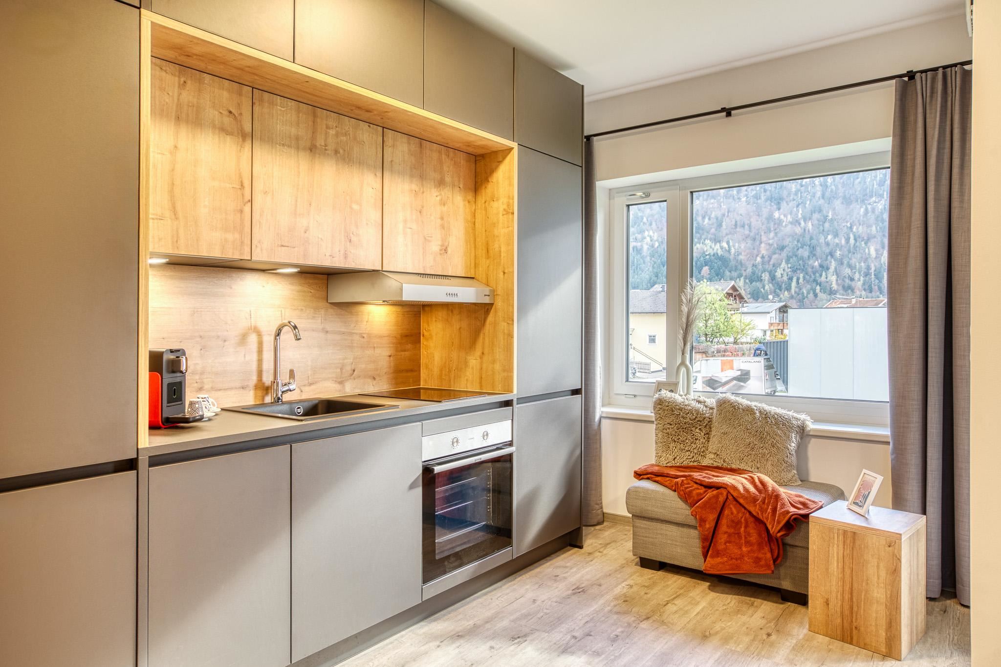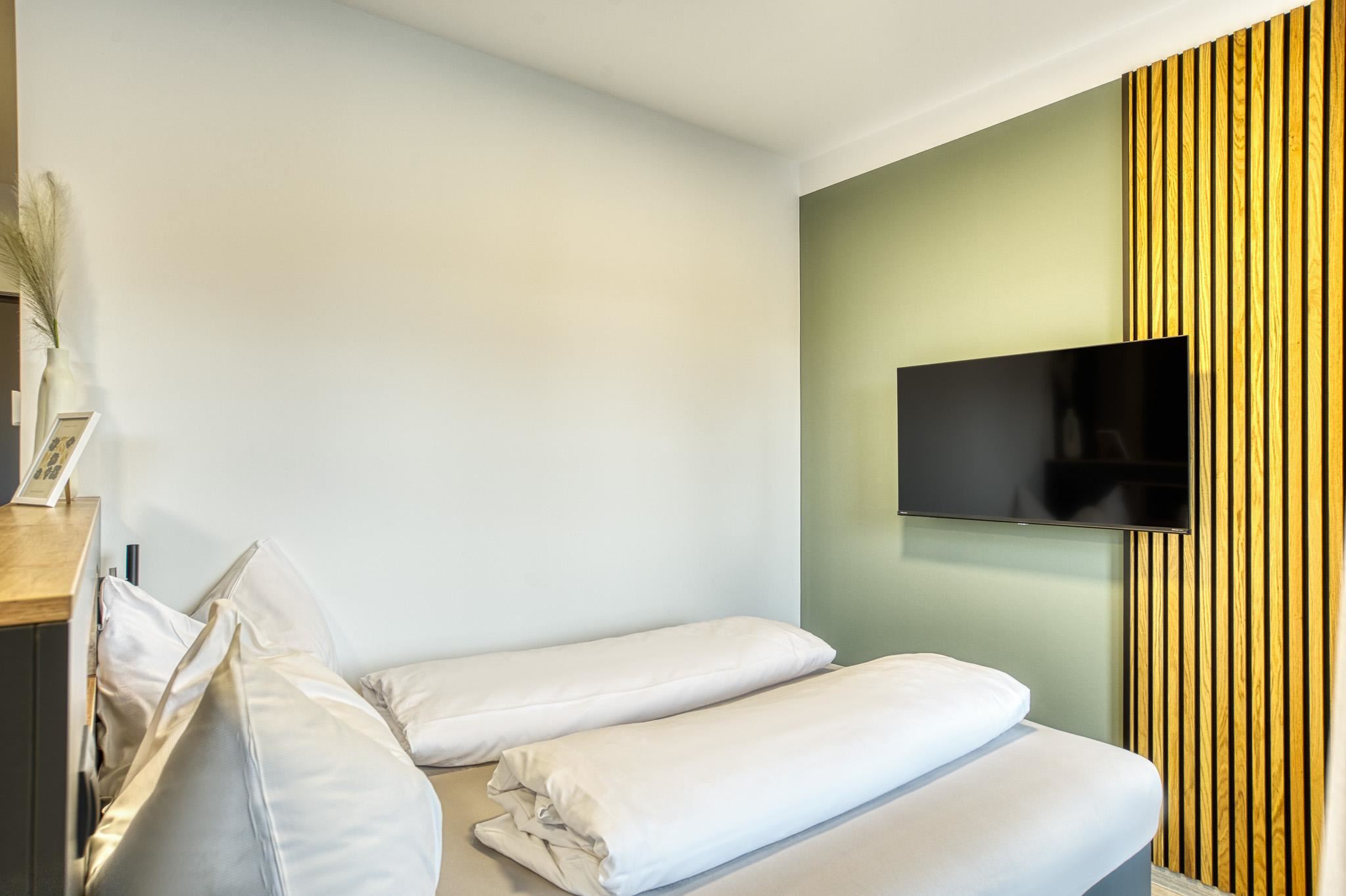 This 30 m² studio for 1–2 people impresses with a small balcony with seating and a cozy, modern decor. It offers a comfortable queen-size bed, a practical kitchenette with a ceramic hob, oven, dishwasher, and capsule coffee machine (including 10 capsules), as well as a stylish bathroom with a shower. Amenities such as a flat-screen TV, Wi-Fi, desk/dining table, wardrobe, safe, and a cozy upholstered chair provide additional comfort.