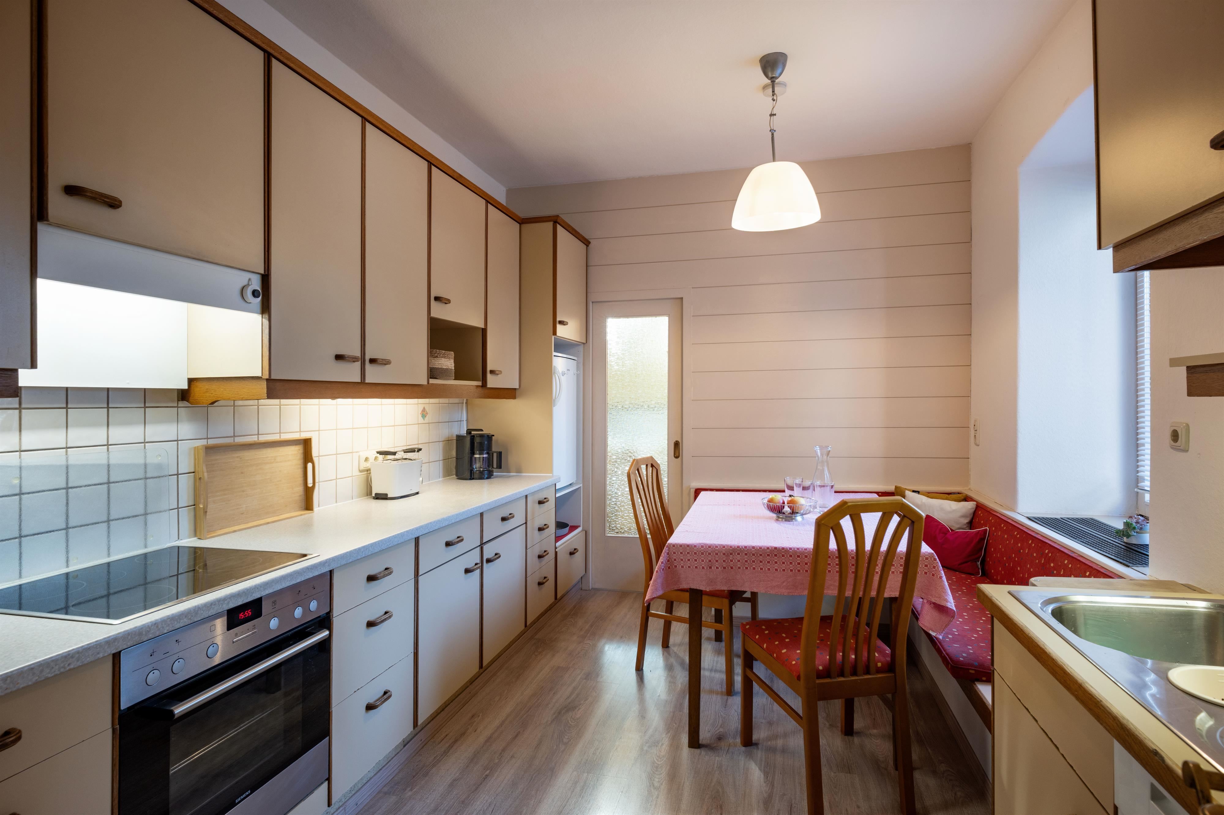 In winter, an optionally heated kitchen stove provides cozy warmth and pleasant evenings. Here you can expect a place that promises relaxation, sociability, and special moments – ideal for your family vacation or a getaway with friends.Featuresanteroom, baby change pad, balcony, balcony (in some rooms), balcony furniture, bath, bed linen available, bedding, central heating, closet, coffeemaker, cooking possibilities, cot, desk, dining room, dish sink, dishes available, dishwasher, double bed (1 bed/2 mattresses), electric stove, essentials (towels, bed linen, soap, toilet tissue), family room/apt., fire extinguisher, freezer compartment, furniture suite, garden, garden barbecue, garden view, ground floor, hairdryer, heater, high chair, in the old building, internet connection available, iron, island kitchen, kettle, kitchen, kitchen and table linen, kitchen utensils, living room, low-noise room/apart., meadow, mini-bar, modem connection, modern furnishing, no carpet, no pets allowed, non-smoking room/apt., number couch/es: 1, number double bed/s: 3, open plan kitchen/living room, oven, pullout couch max. pers.: 2, quiet room/apartment, radio, refrigerator, refrigerators available, room/apt. with connecting door, running hot/cold water, separate bedroom/living room, separate bedroom/s: 2, separate kitchen, separate living room, separate toilet, set for Fondue, set for Raclette, shower, simple furnishing, smoke detector, socket close to bed, sofa, terrace, toaster, toiletries, towels available, TV, use of washmachine, wash stand, washing machine, WiFi, winter garden, wood oven, wooden or parquet floor
