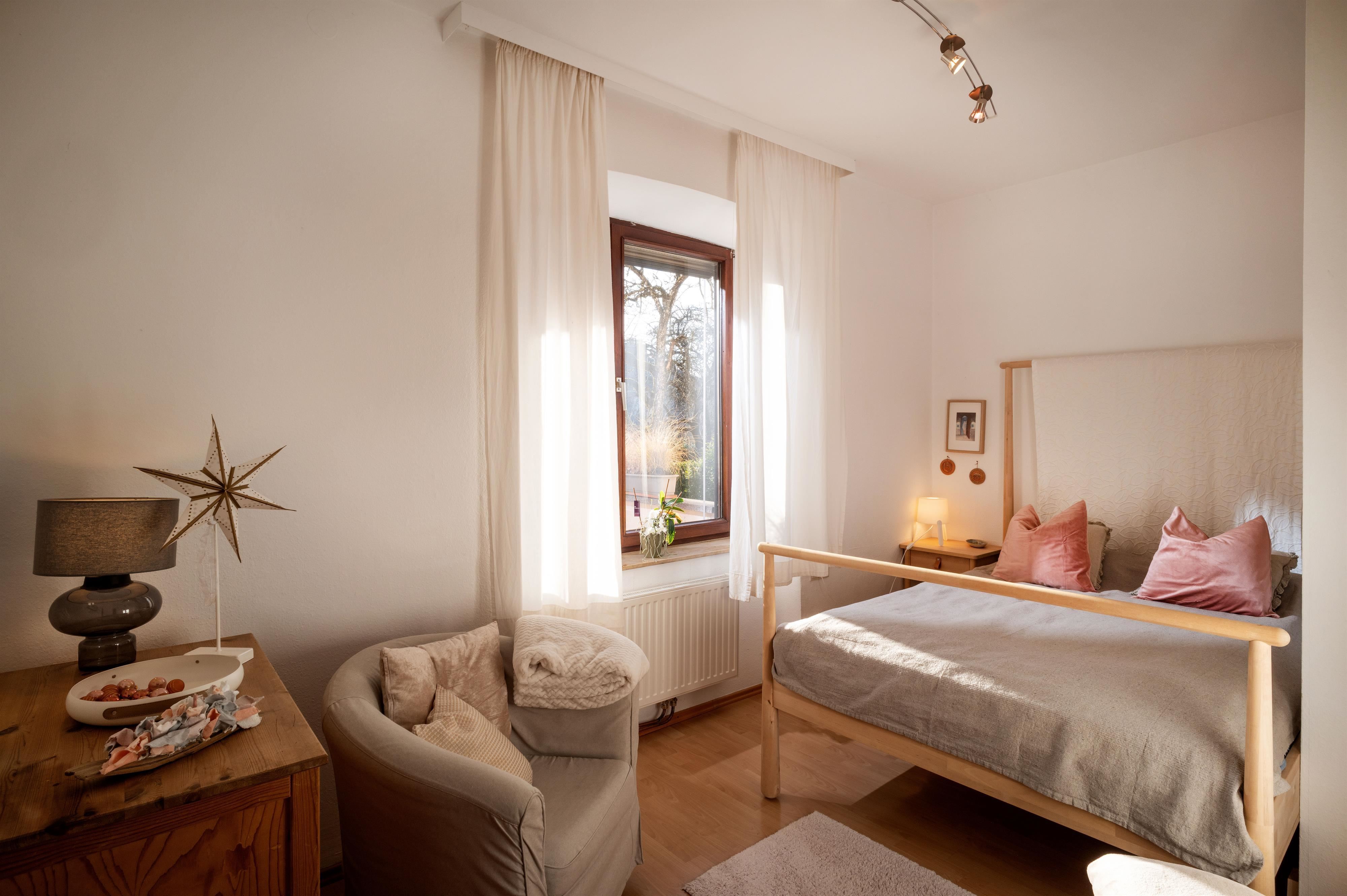 Apartment "Garden View": Welcome to your spacious holiday domicile in the first floor – a place that combines comfort, coziness, and a touch of luxury. The 100 square meter apartment offers space for the whole family and impresses with a thoughtful layout: One large and two smaller double bedrooms ensure privacy and restful sleep. The generous, light-filled bay-window living room with access to the terrace invites you to relax together. A well-equipped kitchen makes cooking together a pleasure. Here you will find everything you need to prepare simple meals: pots, dishes, cutlery, coffee maker, stove, dishwasher.