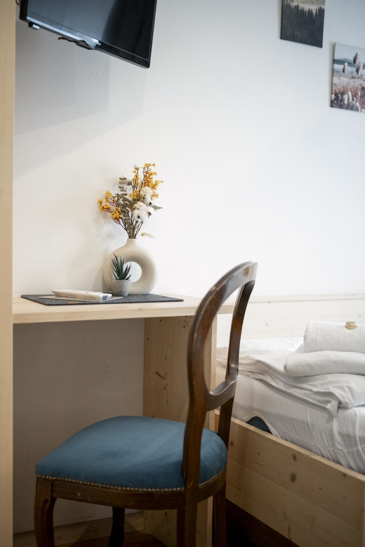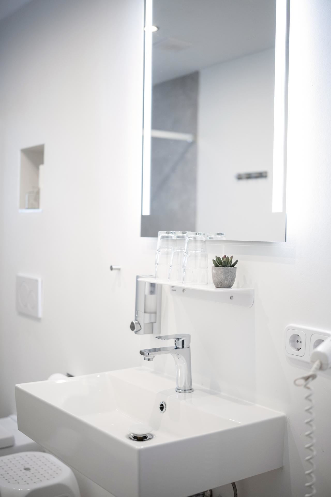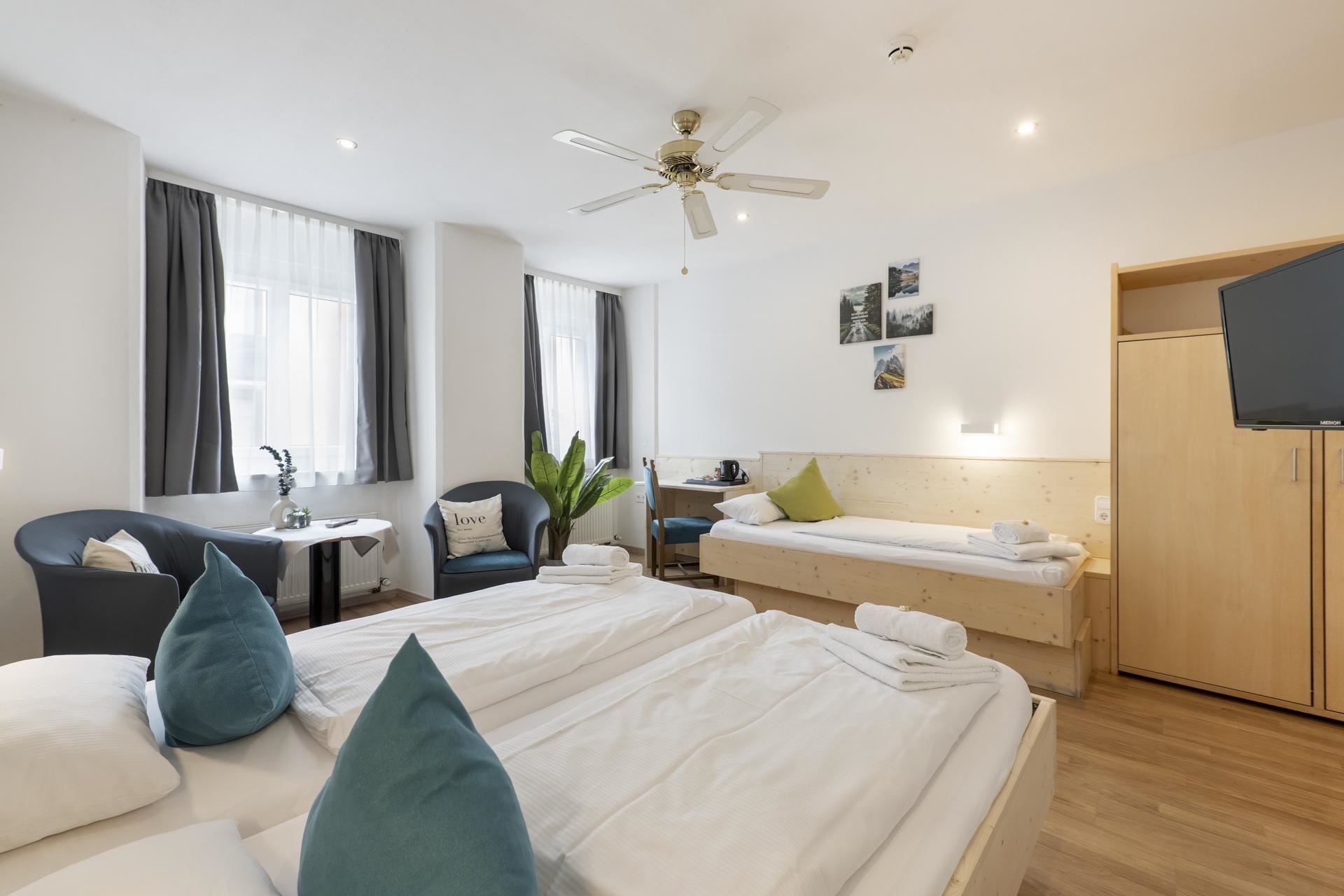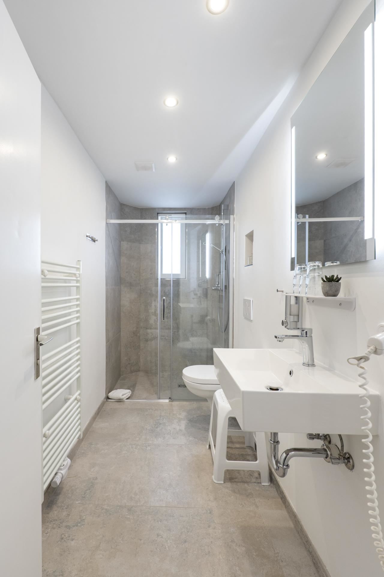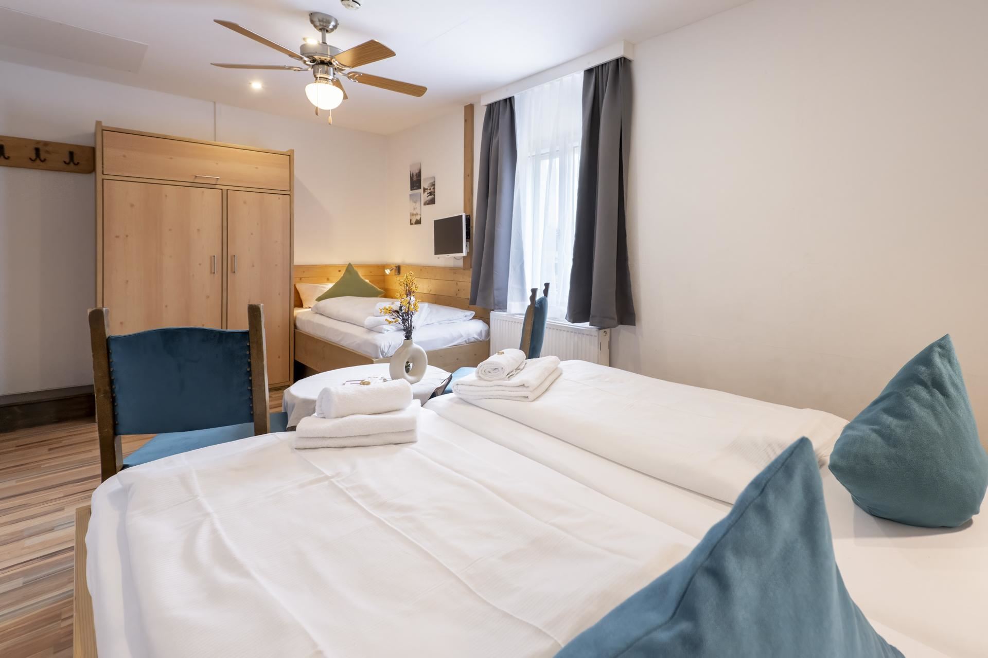 Our single rooms are approx. 15 m2, with a friendly wooden floor, central heating, equipped with a shower/WC, hairdryer, toilet paper and articles, SAT-TV/radio, and a desk.
