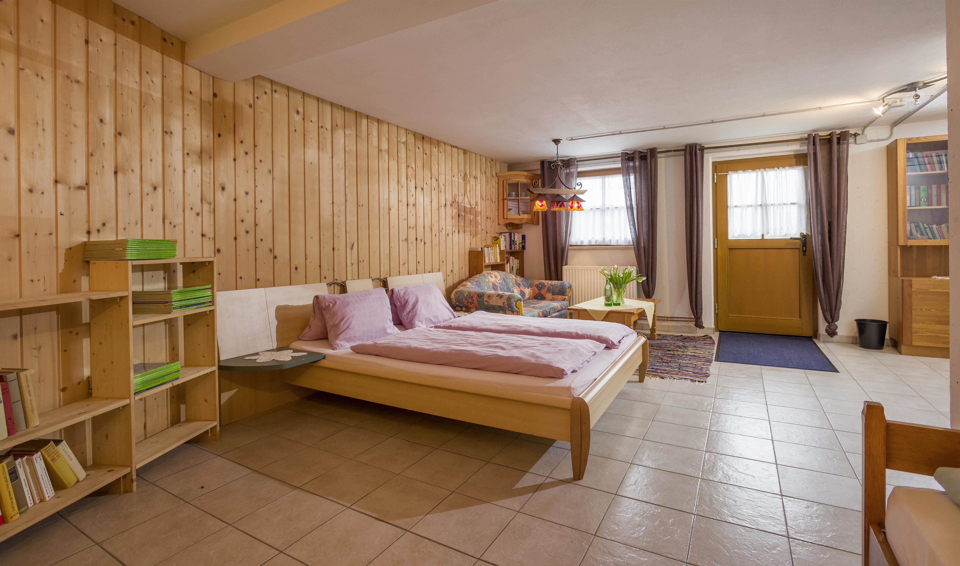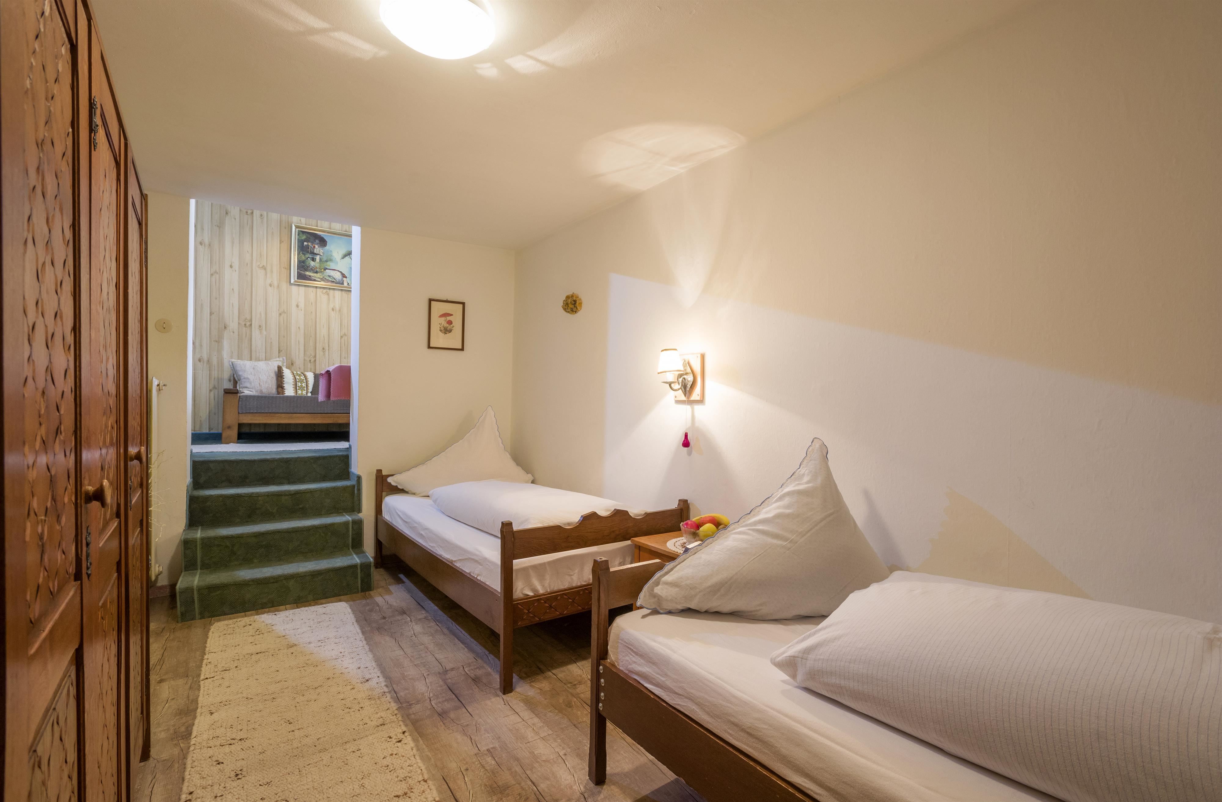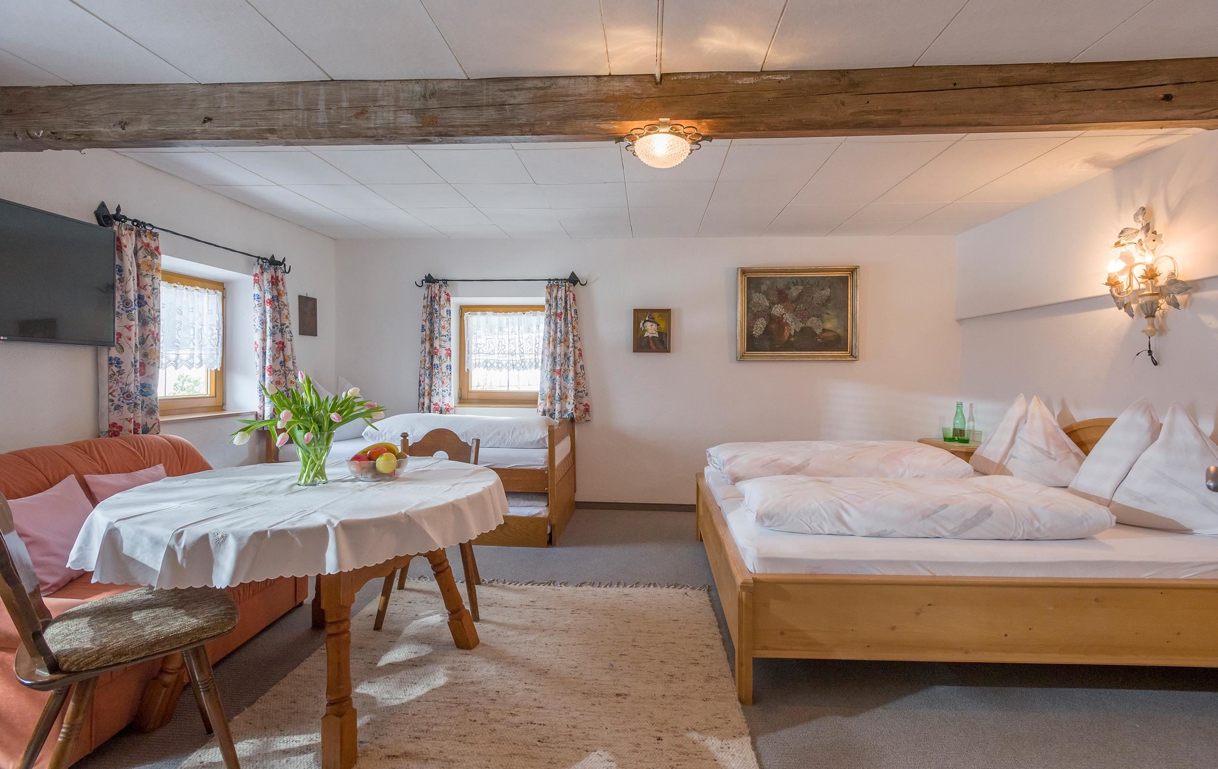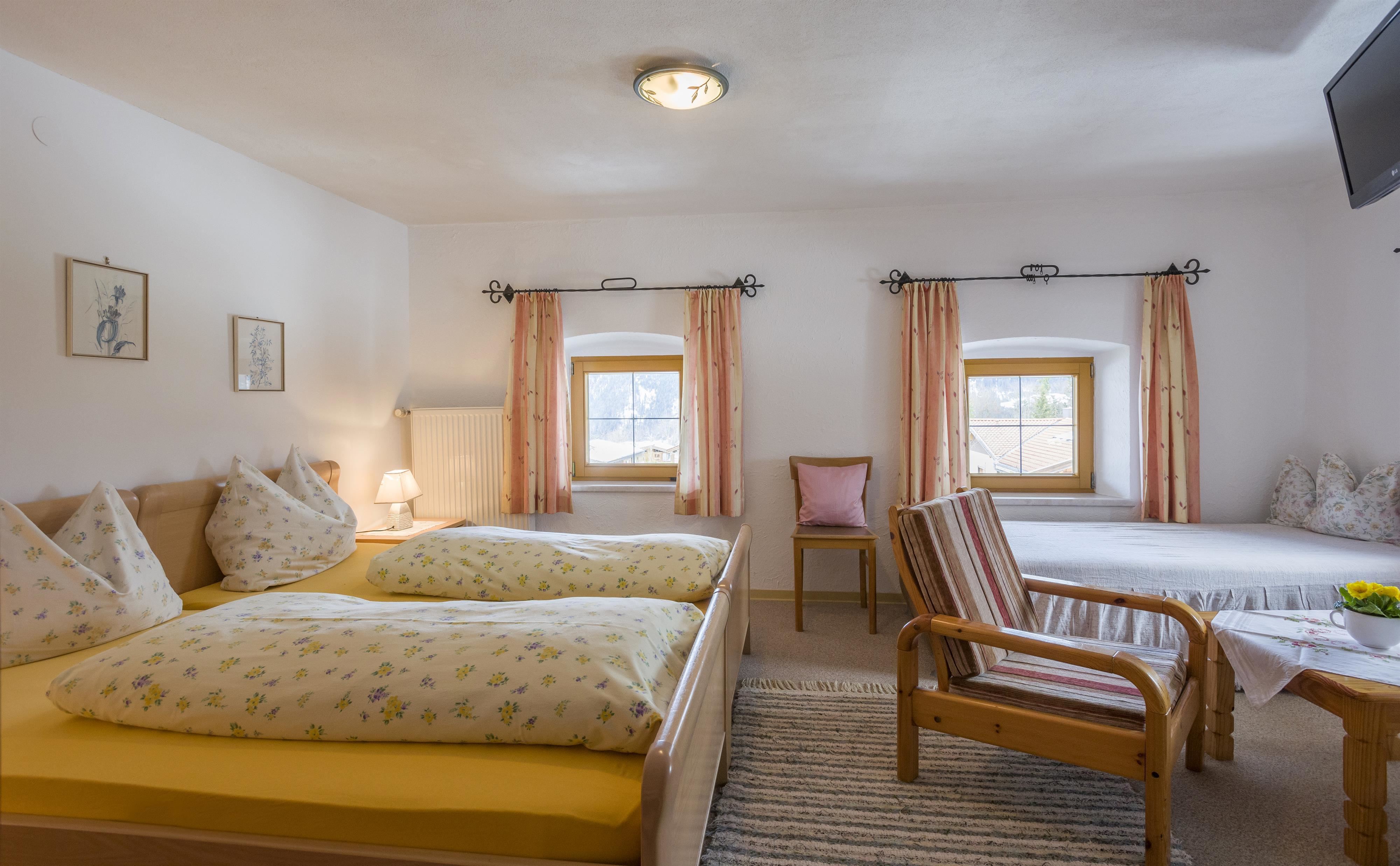Cozy triple room in the historic part of our house in Tyrolean style. Double room and single bed with a separate sitting area.
