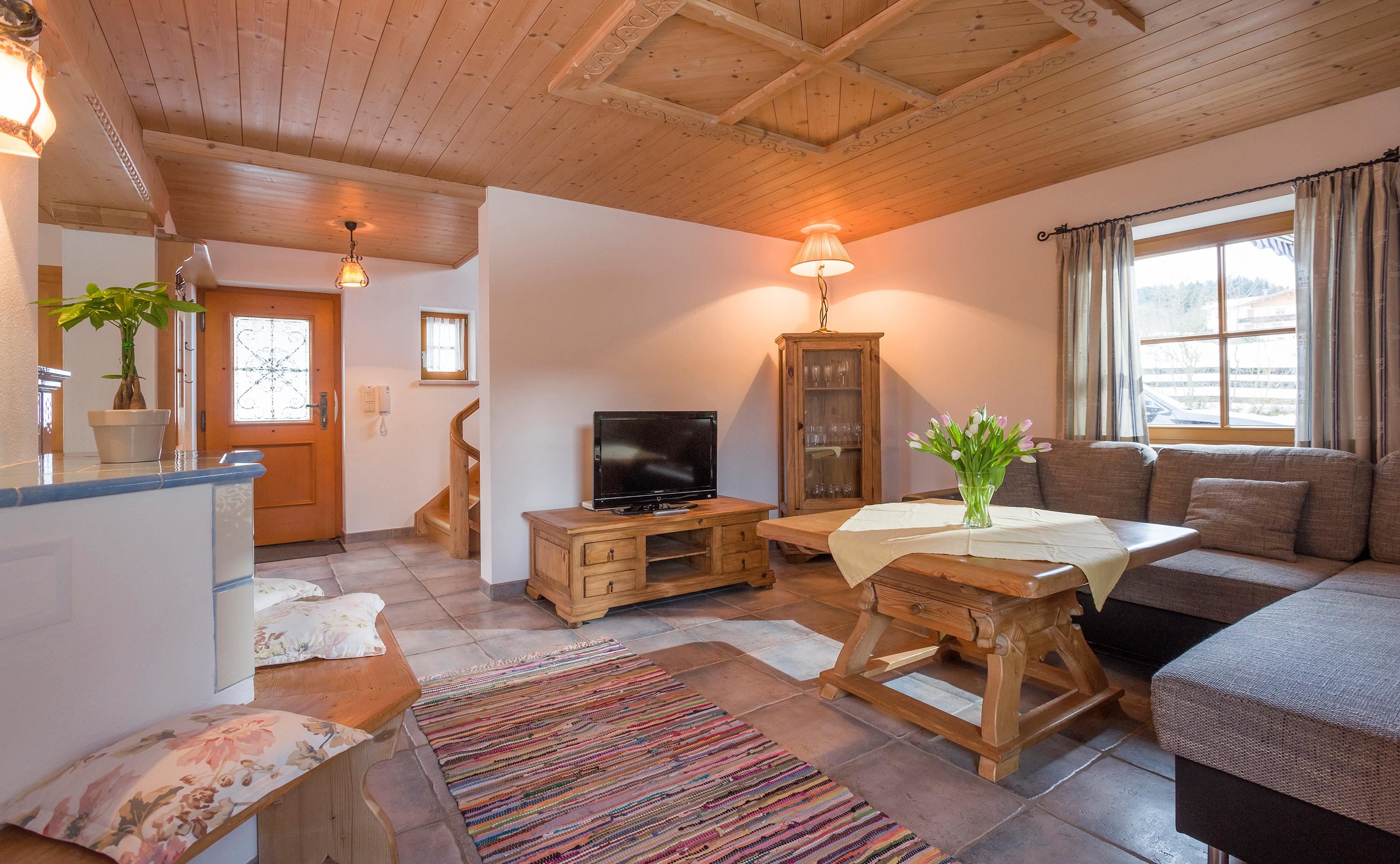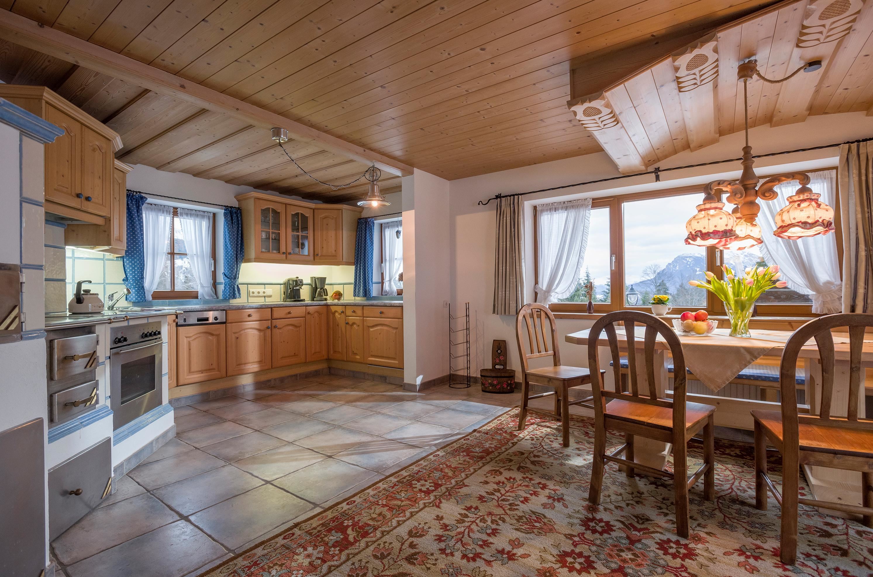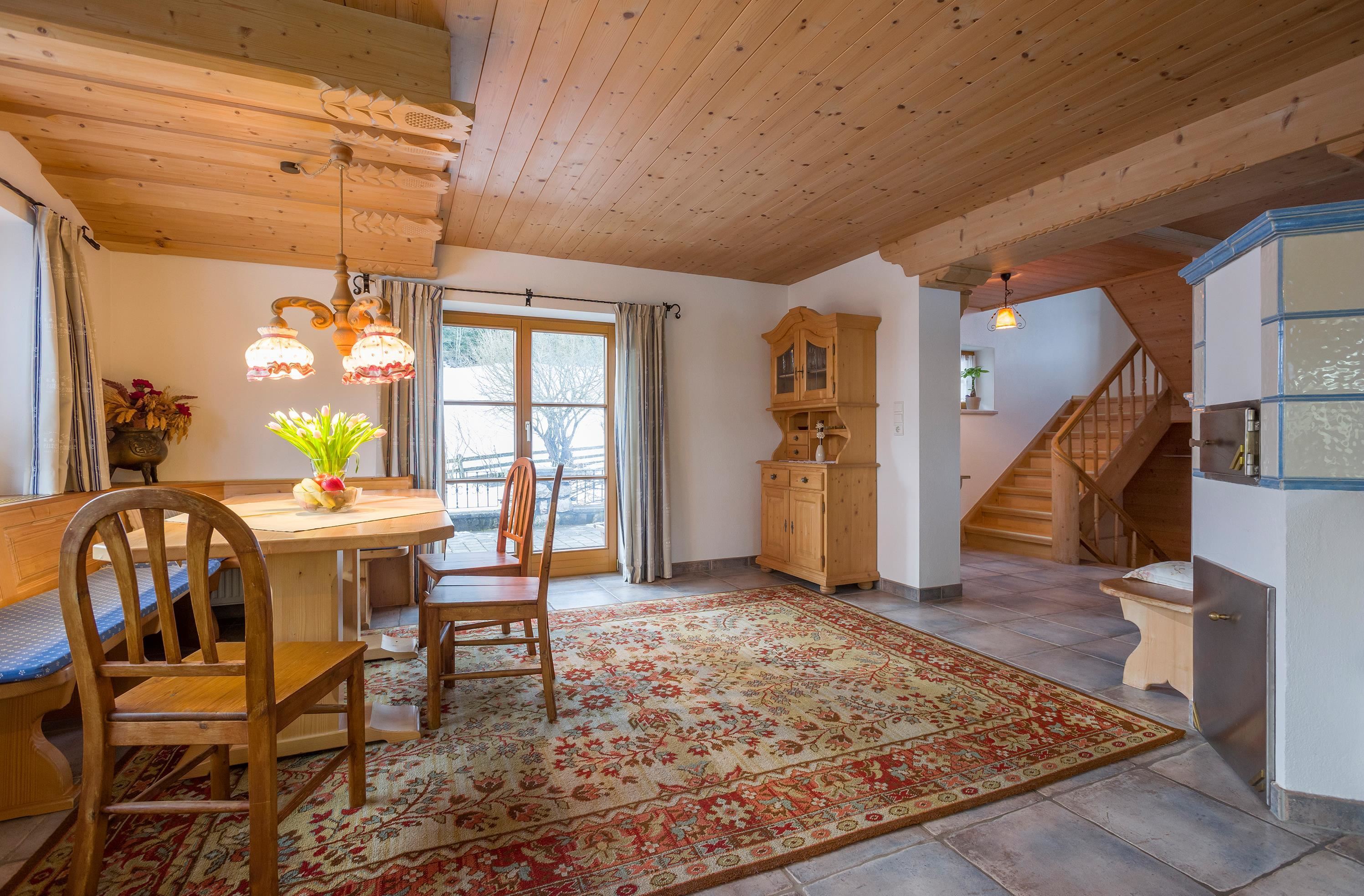 Our chalet is equipped with up to 7 bedrooms in 3 units, 3 bathrooms, 4 toilets, kitchen, dining room, living room, tiled stove, sauna, satellite TV, internet, and telephone. It offers the perfect place for your well-deserved break with its own private garden in a completely quiet location, featuring a sun terrace, sunbathing lawn, and views of the Kaisergebirge and lake!