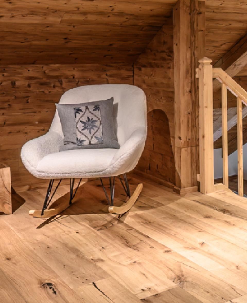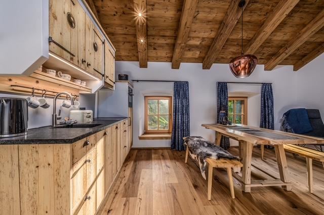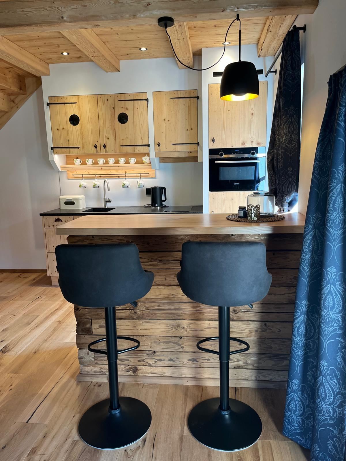 Our holiday apartment "Thresl" offers space for 2 people. Traditional alpine craftsmanship combined with modern comfort gives the two-level apartment its charm. It provides the perfect getaway for couples, hikers, and mountain lovers. Downstairs: living room with a large wooden table for cozy evenings together. A small, well-equipped kitchen made of reclaimed wood, with a small bar. A separate bathroom with a shower and toilet. Upstairs: a cozy bedroom with a double bed under the eaves. A small lounge with 2 rocking chairs. Both levels have a balcony with stunning views of the Thiersee mountains and forests.